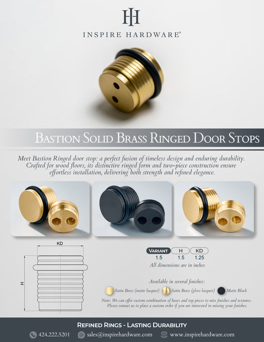 Our door stops are designed with the same intention and material integrity as every piece in the Inspire Hardware collection. Forged in solid brass and available in signature finishes, each stop blends seamlessly into its surroundings while delivering dependable performance.