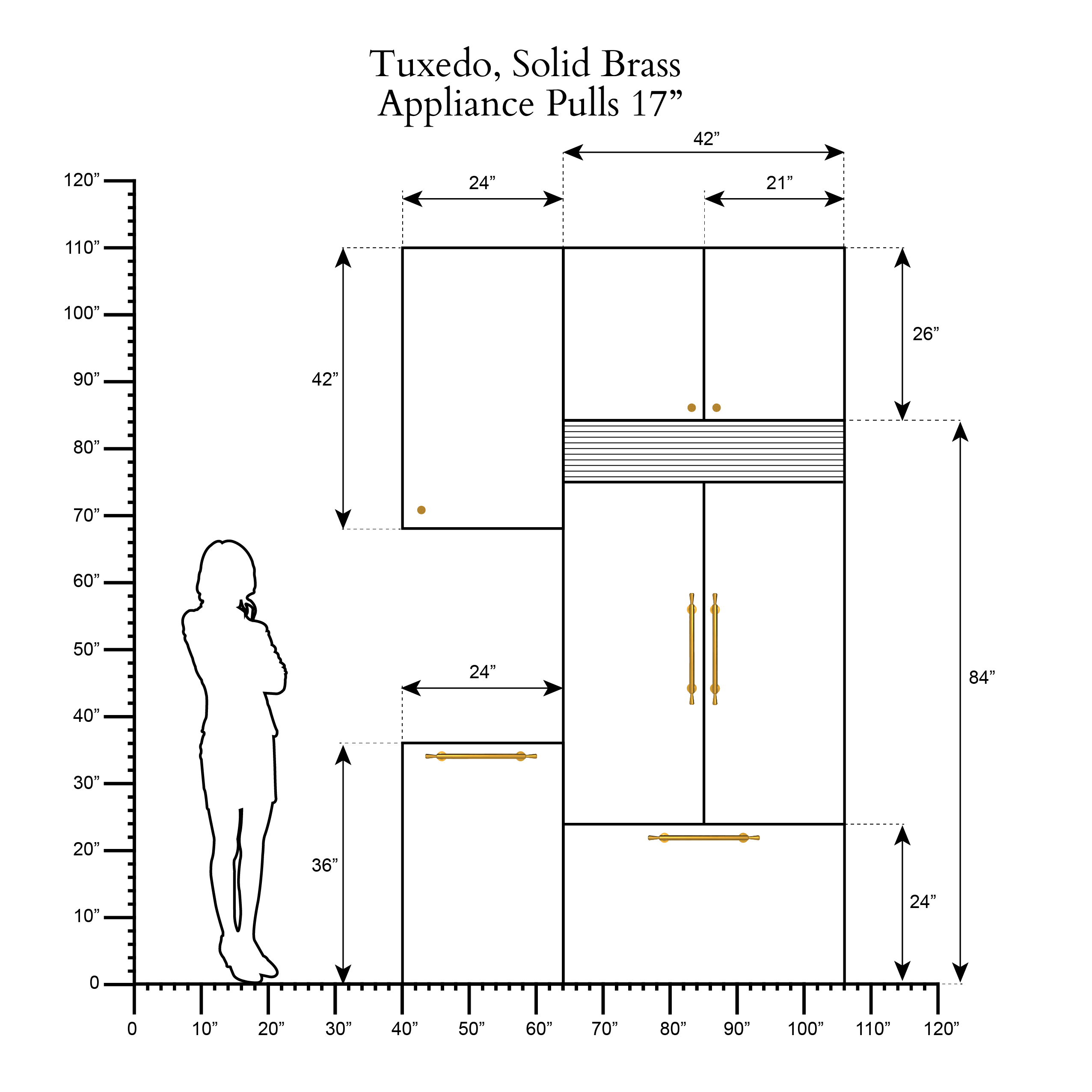 See how Tuxedo Appliance Pull looks on standard cabinet sizes