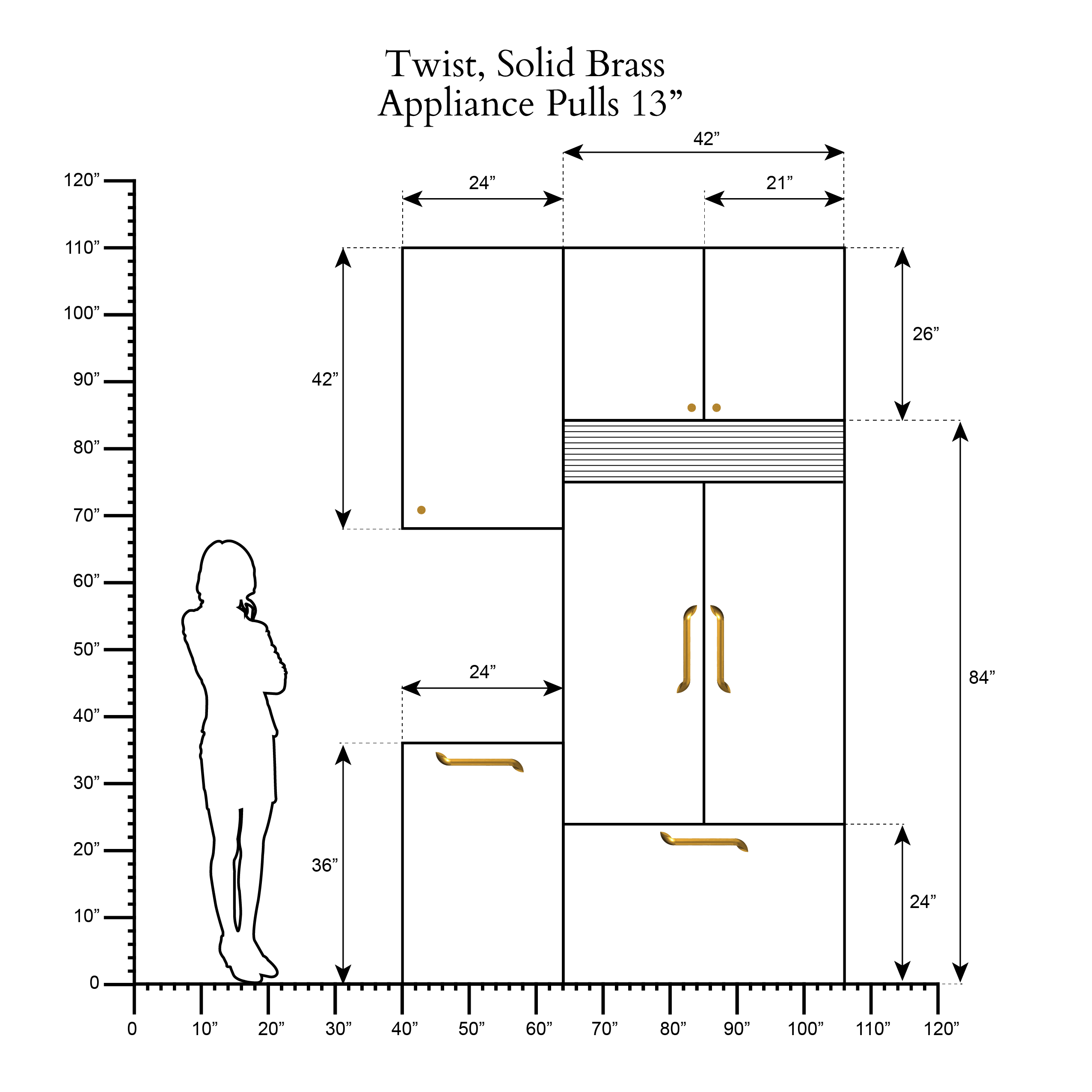 See how Twist Appliance Pull looks on standard cabinet sizes